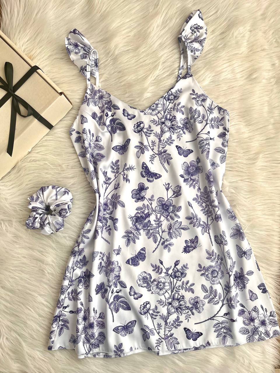 پیراهن ساتن LX طرح گل آبی؛ ترکیب ظرافت، لطافت و درخشش زنانه