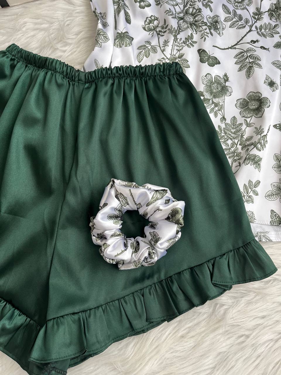 تاپ شلوارک ساتن LX دیور یشمی