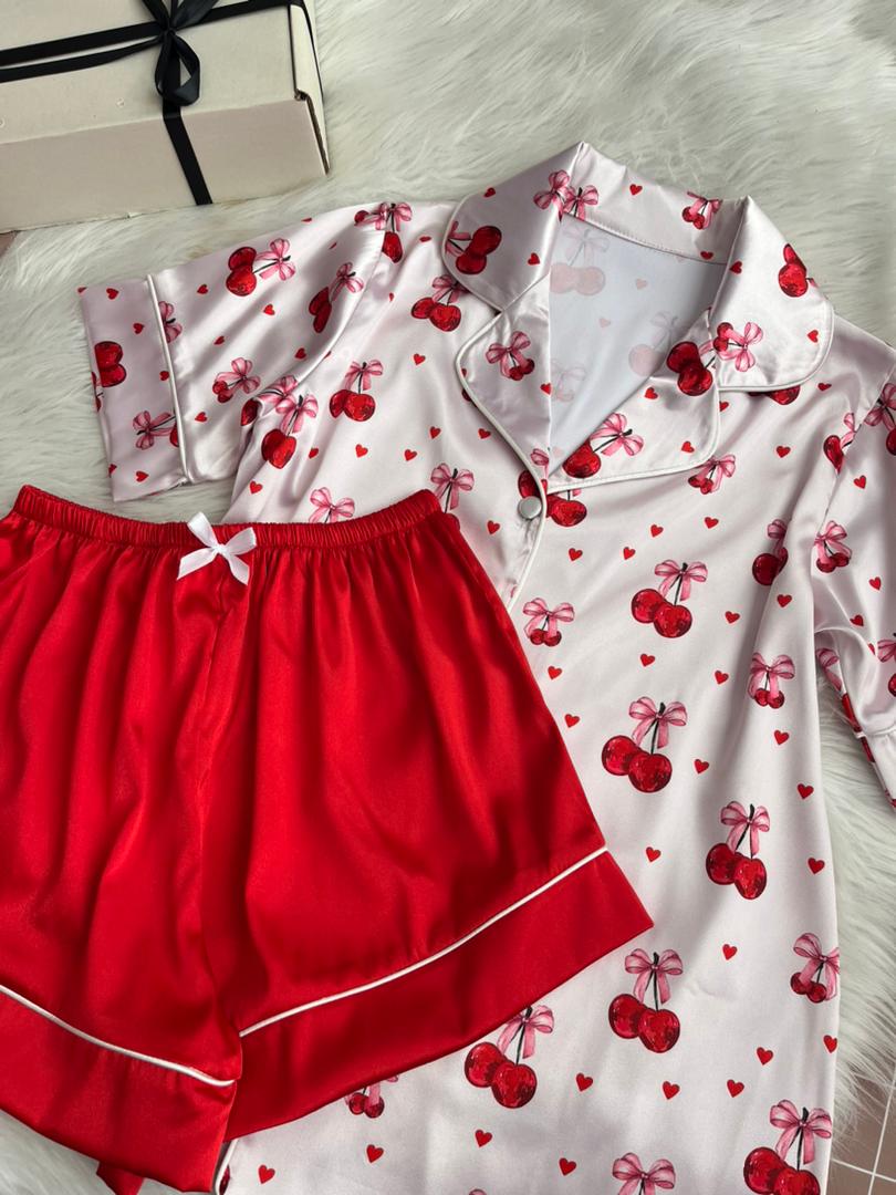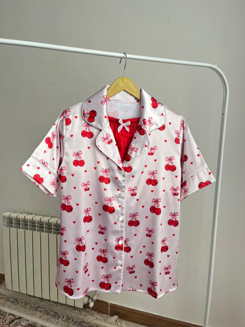 بلوز آستین کوتاه و شلوارک طرح گیلاس – راحتی شیک و لطیف برای تمام فصلها
